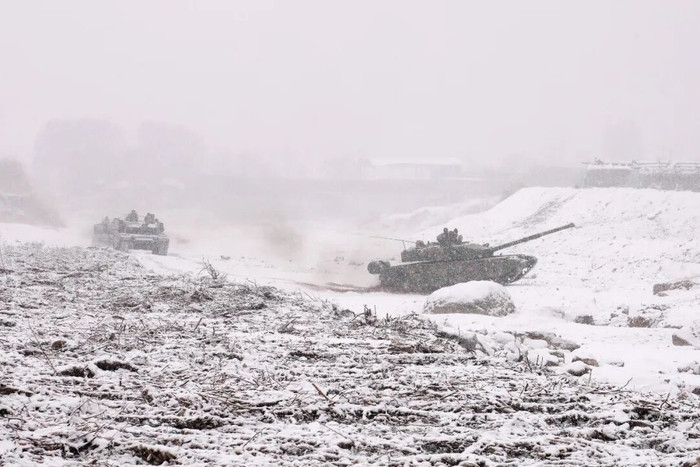 将坦克分队拉至冰封雪覆的地域