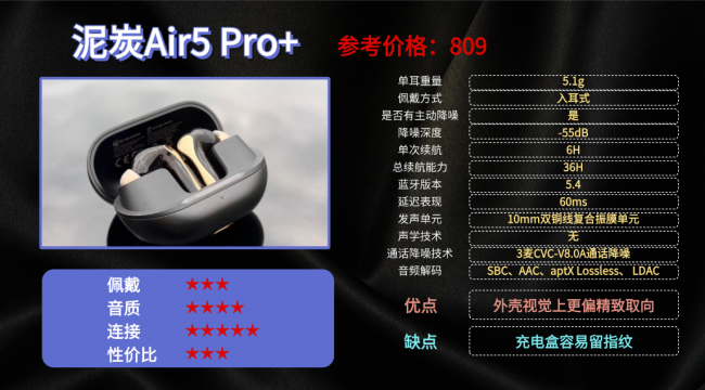3、泥 炭A ir5 Pro+蓝牙耳机