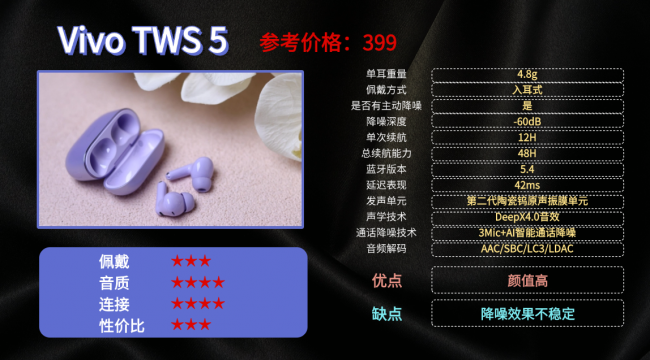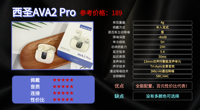 ✔在蓝牙性能上,宇宙也无谓系念,西圣AVA2 Pro接纳了全新的蓝牙5.4芯片,在15米以内的复杂环境中皆能保持稳定的认知,延时低至50ms,不卡,不休连。即使玩手游也能保持音画同步。况且还具备3Mic+AI通话降噪,嘈杂环境下理解通话,系数不是问题,委果强无敌!标价在200,却领有比好意思千元耳机的音质和舒落幕,被媒体称为是蓝牙耳机中的性价比之王。