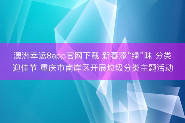 新春将至,年味渐浓。近日,重庆市南岸区立足春节节点,将喜庆祥和的节日氛围与绿色文明的环保理念深度融合,精心组织开展一系列形式新颖、寓教于乐的垃圾分类主题活动,引...