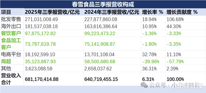 从春雪食物三季报不同渠谈的收入组成看,让东谈主很难不猜思社会上到底发生了哪些变化。