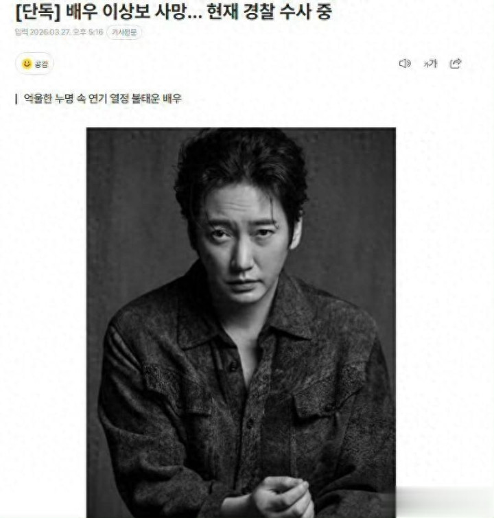 2026 年 3 月 26 日,韩国男演员李尚宝被发现死于家中,年仅 45 岁。收尾当今,他的具体升天原因仍在看望当中,但从其过往资格来看,这一后果与困扰他多年的抑郁症有着密切干系。