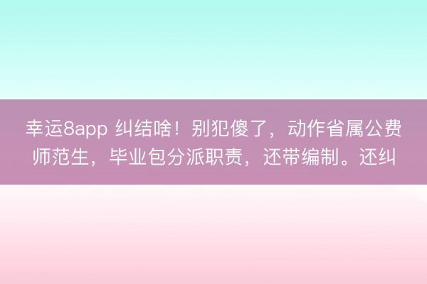 纠结啥!别犯傻了,动作省属公费师范生,毕业包分派职责,还带编制。还纠结考什么研?当今这奇迹环境,确定是优先职责啊。若是真念念读研幸运8app,以后边职责边读亦然...