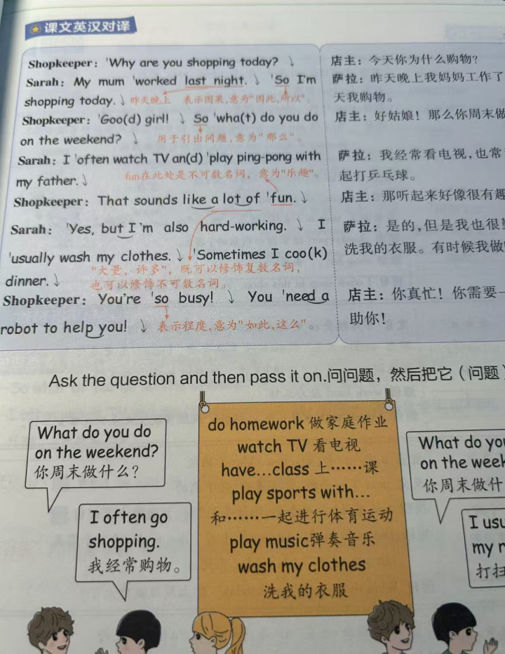 可以让孩子先跟着音频听单词的标准发音,再把单词放到课文里连读,培养语感。