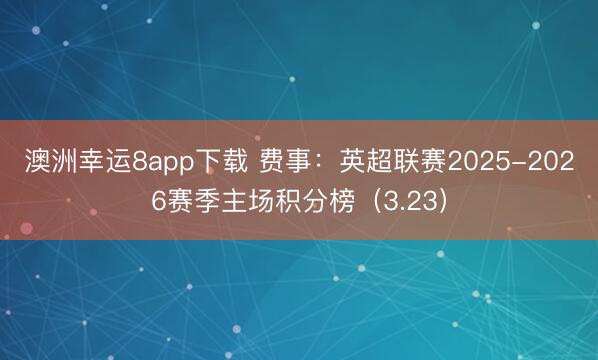 澳洲幸运8app下载主场积分榜(完结到 2026年3月23日 ) 排名 队名 已赛 胜 平 负 进球 失球 净胜球 积分 1 阿森纳 15 12 2 1 35 ...