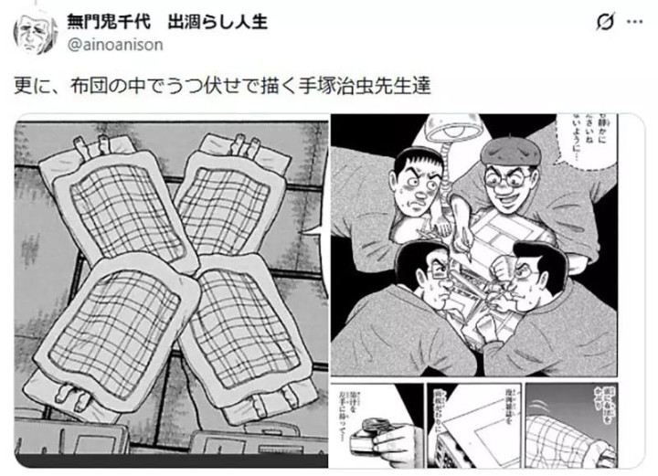 手冢治虫致使会趴在被窝里画稿。