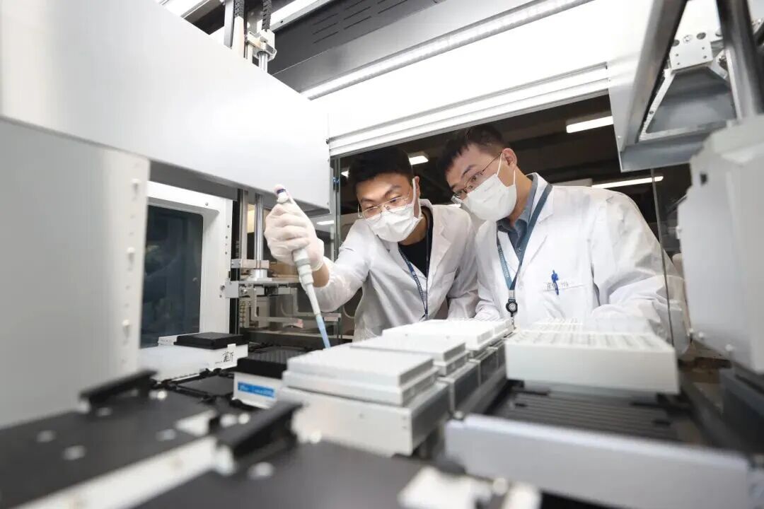 深圳合成生物究诘重要科技基础设施,责任主说念主员正在作念实验。深圳报业集团记者杨少昆 摄