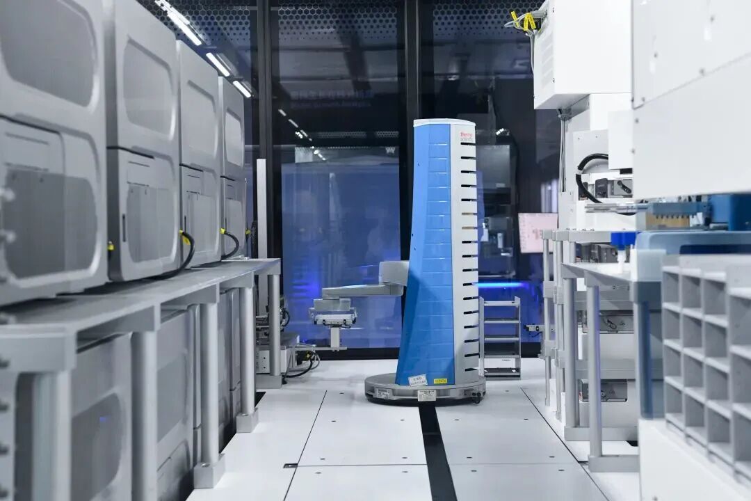 深圳合成生物究诘重要科技基础设施,机器东说念主正在自动化责任。深圳报业集团记者 杨少昆 摄