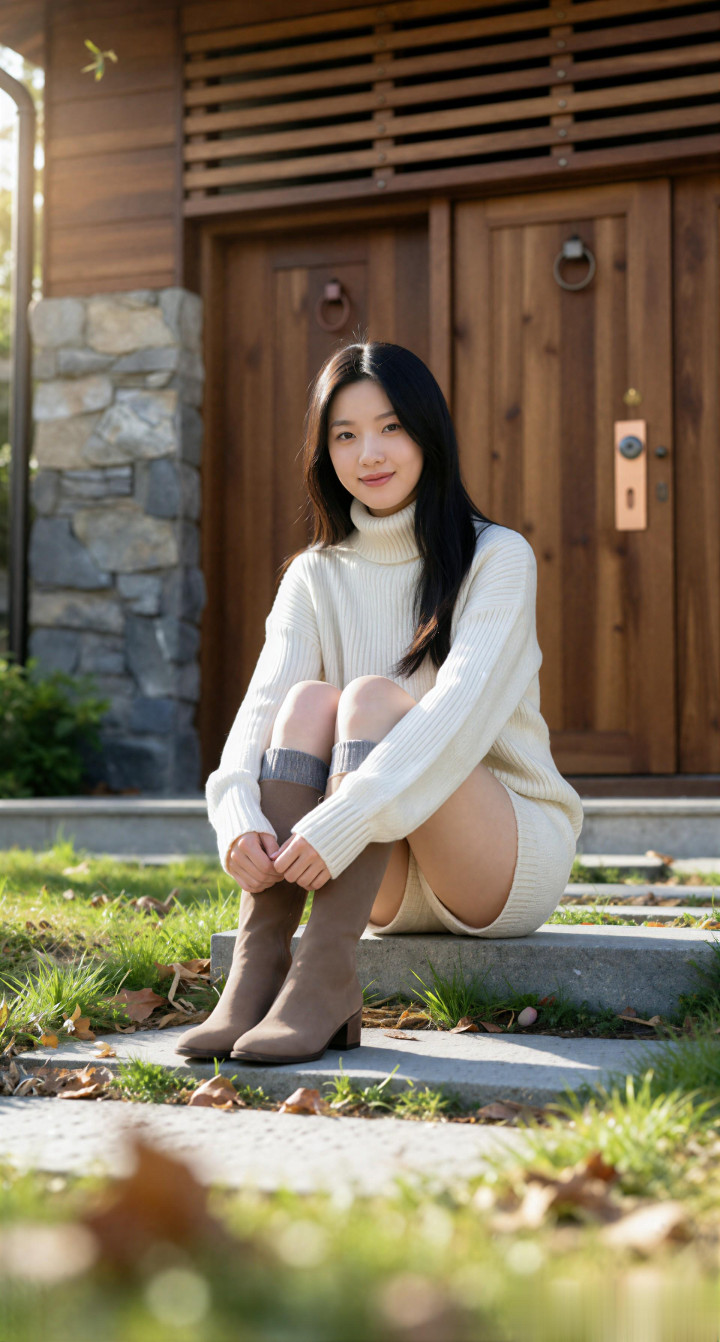 幸运8app 穿米白色高领毛衣的小姐