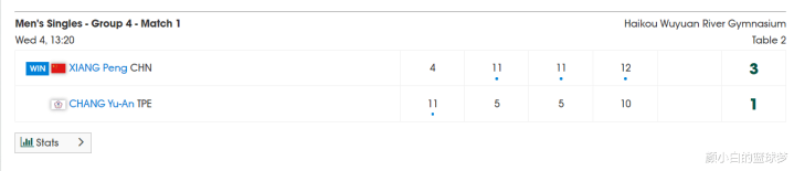 向鹏是中国男篮的主力之一,他的首秀也还算不错,面对张佑安他只用了四局就拿下胜利,四局比分:4-11、11-5、11-5、12-10,在大比分0-1落后的情况下连赢三局。