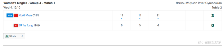 蒯曼在WTT香港总决赛不敌王曼昱,WTT多哈冠军赛不敌陈幸同,WTT多哈球星挑战赛不敌佐藤瞳,进入2026赛季后状态还是不稳,亚洲杯的首秀倒是3-0拿下,她面对苏籽童,三局比分:11-8、11-5、11-4。