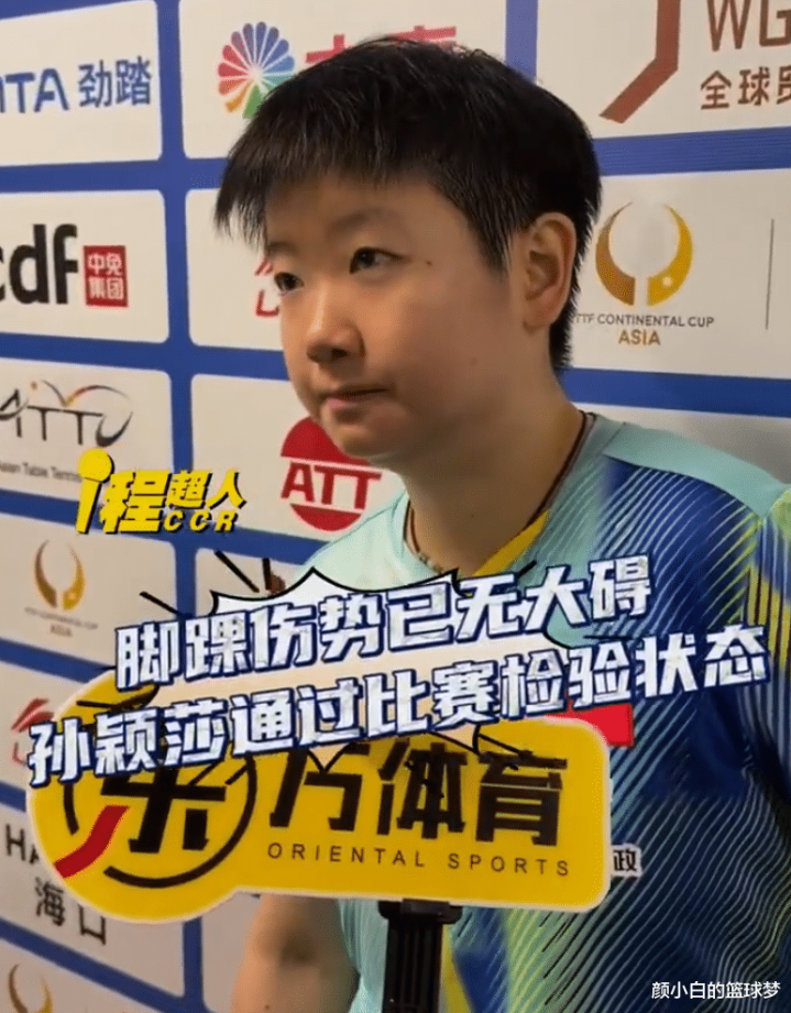 赛后孙颖莎谈到自己左脚踝的伤势问题:我感觉自己的脚踝基本已经没有什么问题,休息+康复训练基本一个月左后,自己知道自己的身体状态没有任何可担心的,现在就是用比赛去检验自己到底恢复了多少。