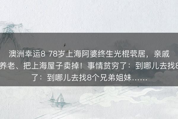 原标题:78岁上海阿婆终生光棍茕居,亲戚念念接她去外地养老、把上海屋子卖掉!事情贫穷了:到哪儿去找8个兄弟姐妹…… 近日,家住江苏常州的陶女士鸳侣找到媒体求援,...