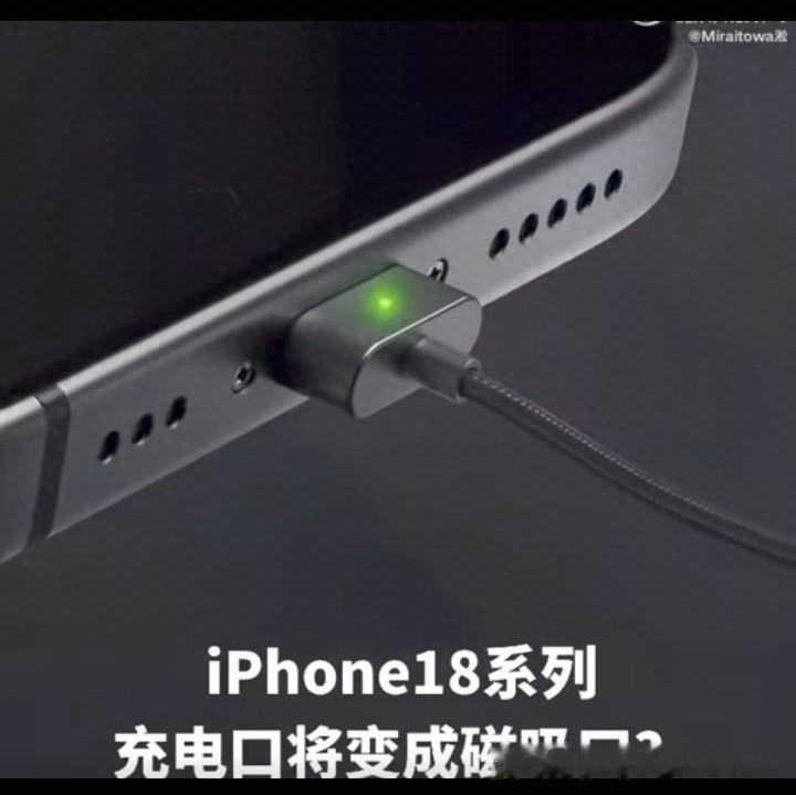 2026年,一张对于“iPhone 18系列充电口将造成磁吸口”的观念图在酬酢平台激发烧议。图中展示了一款iPhone底部袭取相似MacBook Pro的磁吸充电接口,绿色调换灯亮起,示意充电景况。这一设思虽充满夙昔感,但联接现时工夫逻辑与大师设施环境,其落地可能性极低,更多是用户对苹果盘算推算革命的期待投射。