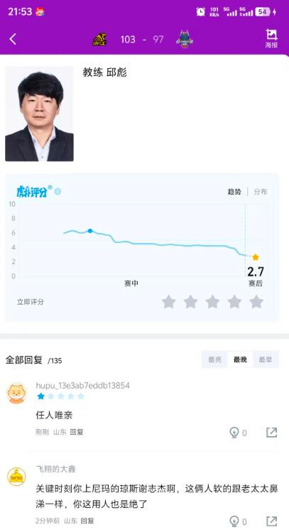 从关系细节看,山东男篮貌似输在了裁判。一方面,第四节后半段山东男篮在一次进攻中,裁判追罚了陶汉林犯规,其实此次判罚很牵强,但本场比赛阐扬出色的陶汉林却因此五犯离场。另一方面,山东男篮在罚球数据上,亦然33比41少了8次。但这仅仅比赛的步地,其实主场哨简直每个队齐有,此役裁判天然有偏畸,但不至于决定比赛走势。果真导致山东队输球的,是邱彪的两点造作: