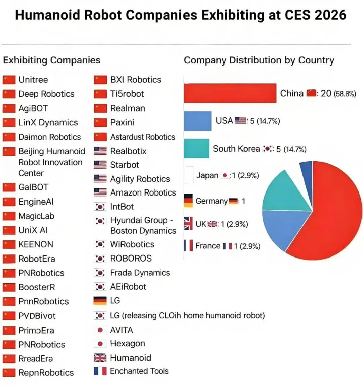 (CES 2026 东谈主形机器东谈主展区,中国企业占主导)