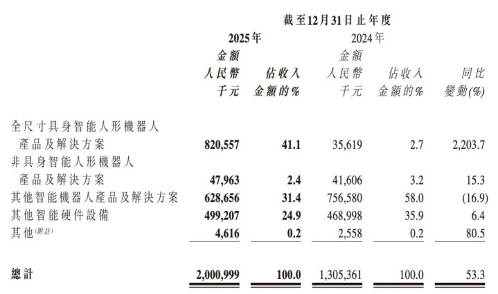 最近,“东谈主形机器东谈主第一股”优必选发布了年报,数据炫耀,2025年它的全尺寸具身智能东谈主形机器东谈主,一共卖了1079台,收入暴涨2203%,全年营收超20亿。