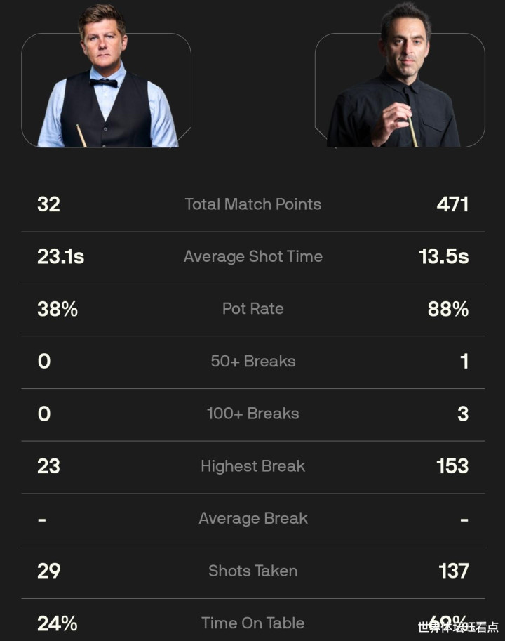 奥沙利文收拢契机打进红球获取上手的契机,并单杆打出153分的弘扬以169:0拿下此局成效取得1-0逾越。值得一提的是,单杆153分亦然斯诺克追究比赛中的历史最高分。